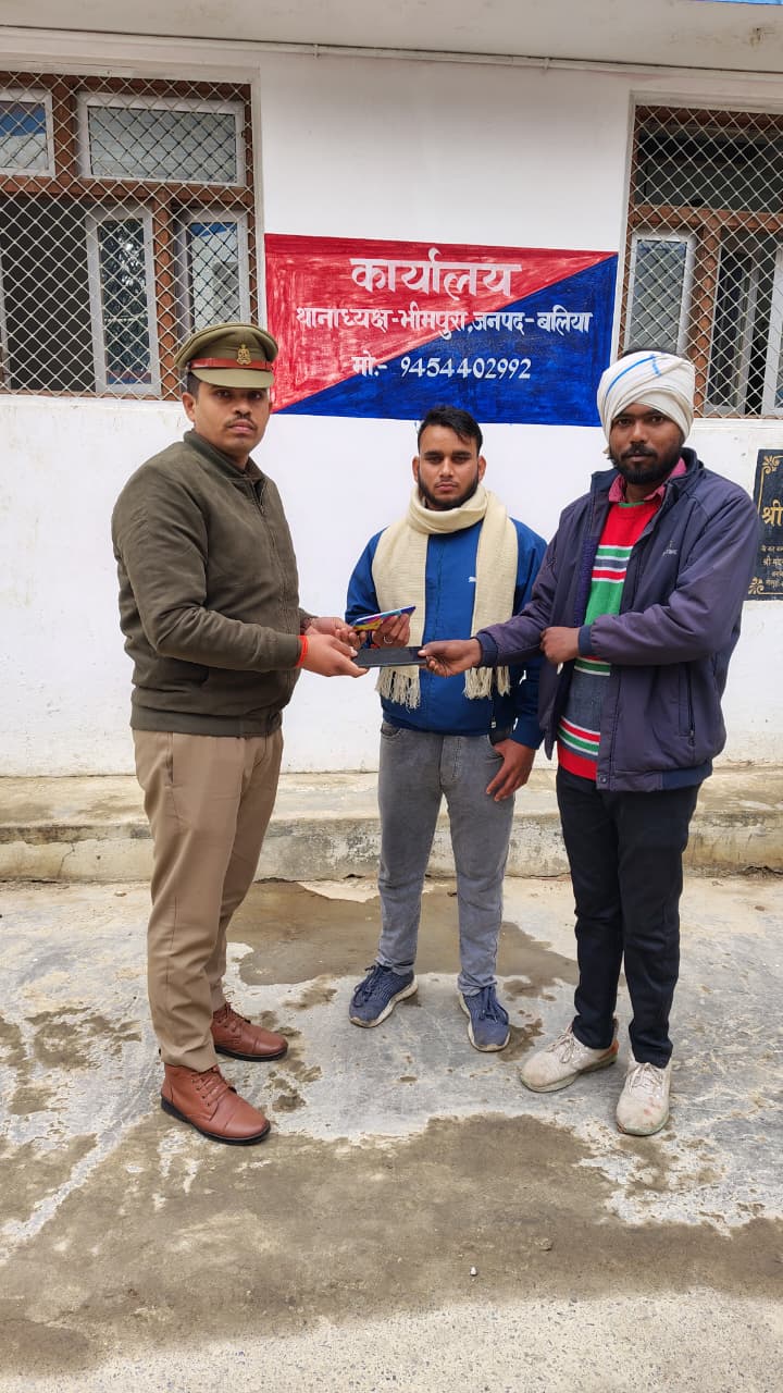 मोबाइल स्वामी ने भीमपुरा पुलिस टीम की भूरि-भूरि प्रशंसा करते हुए दिया धन्यवाद । श्रीमान् पुलिस अधीक्षक महोदय बलिया श्री ओमवीर सिंह द्वारा थाना स्थानीय पर CEIR पोर्टल के माध्यम से दर्ज मोबाईल गुमशुदगी की बरामदगी हेतु चलाये जा रहे अभियान में श्रीमान अपर पुलिस अधीक्षक बलिया उत्तरी महोदय श्री